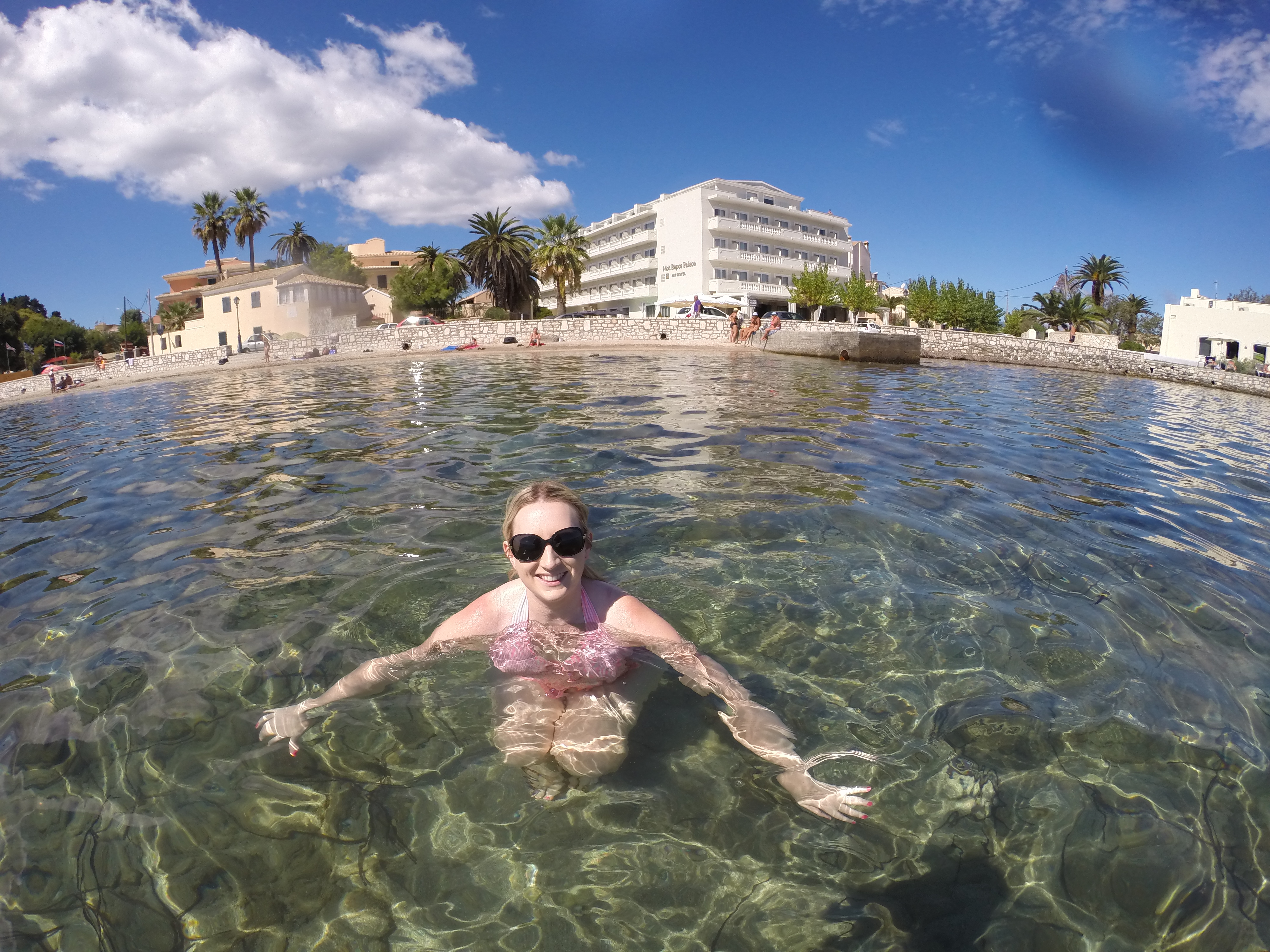 Our hotel was in Corfu Town (which was a little deceiving). The hotel (Aquis Mon Repos Palace) was modern and had an amazing free breakfast, but was further out of town than it made out to be online. We were definitely one of the further away hotels from the city, but it ended up being a blessing in disguise. The next morning we woke to find that the hotel was right next to the bay. The water and weather meant it was warm enough to dip into the ocean right next to our hotel! The water in that cove was the warmest we found in Greece. Despite the 2-3km walk into the town, I would definitely stay there again.