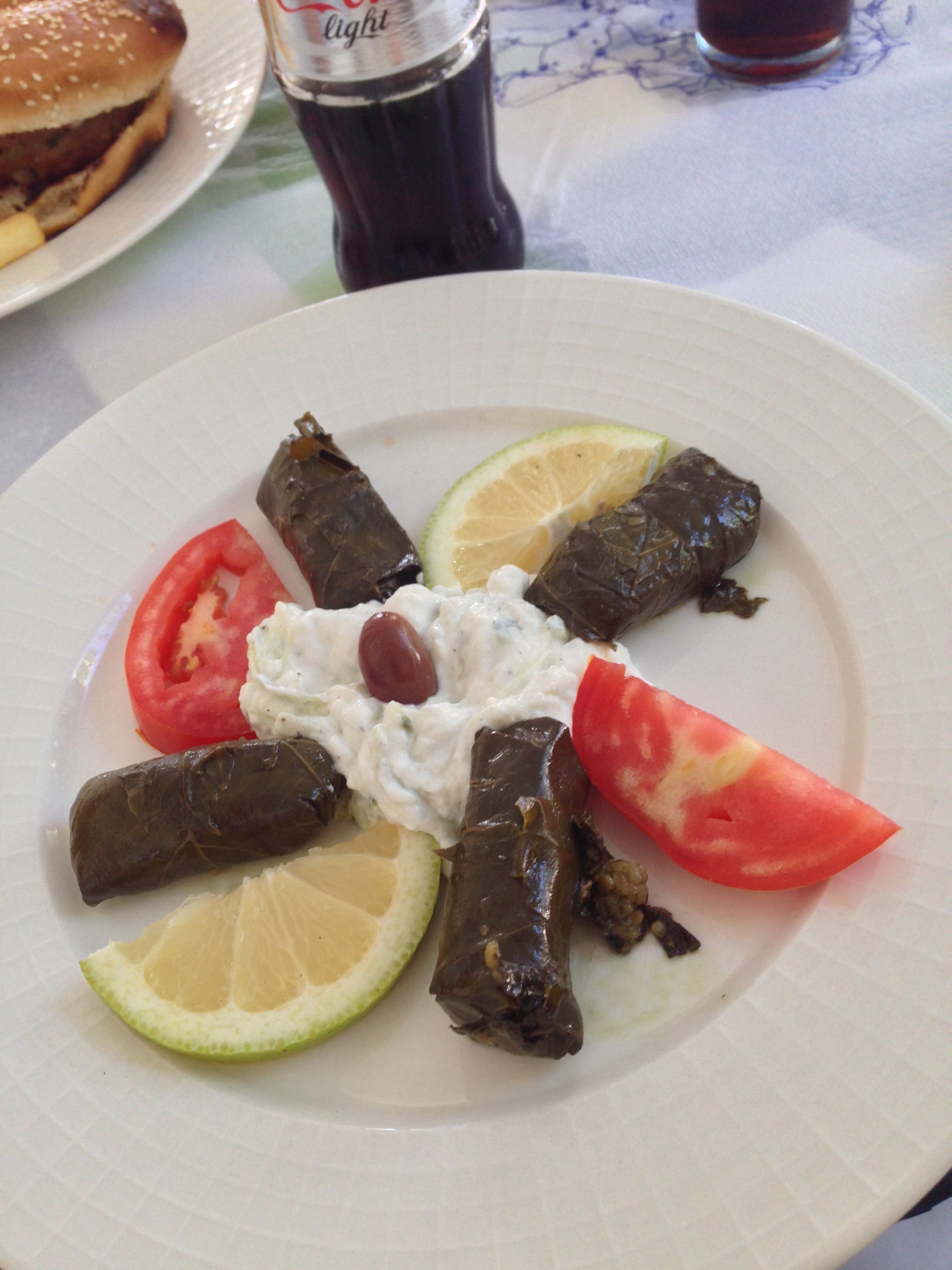 It’s really exhausting laying in the sun with nothing to worry about, it really makes you hungry (yes, I’m being sarcastic as always.) As soon as Nick was back, we headed off to a little hotel/restaurant that was by the beach. For a total of €15 we had a delicious lunch with several dishes, including my now favourite Greek food – dolmades. Who knew that rice stuffed in grape leaves could be so darn delicious?